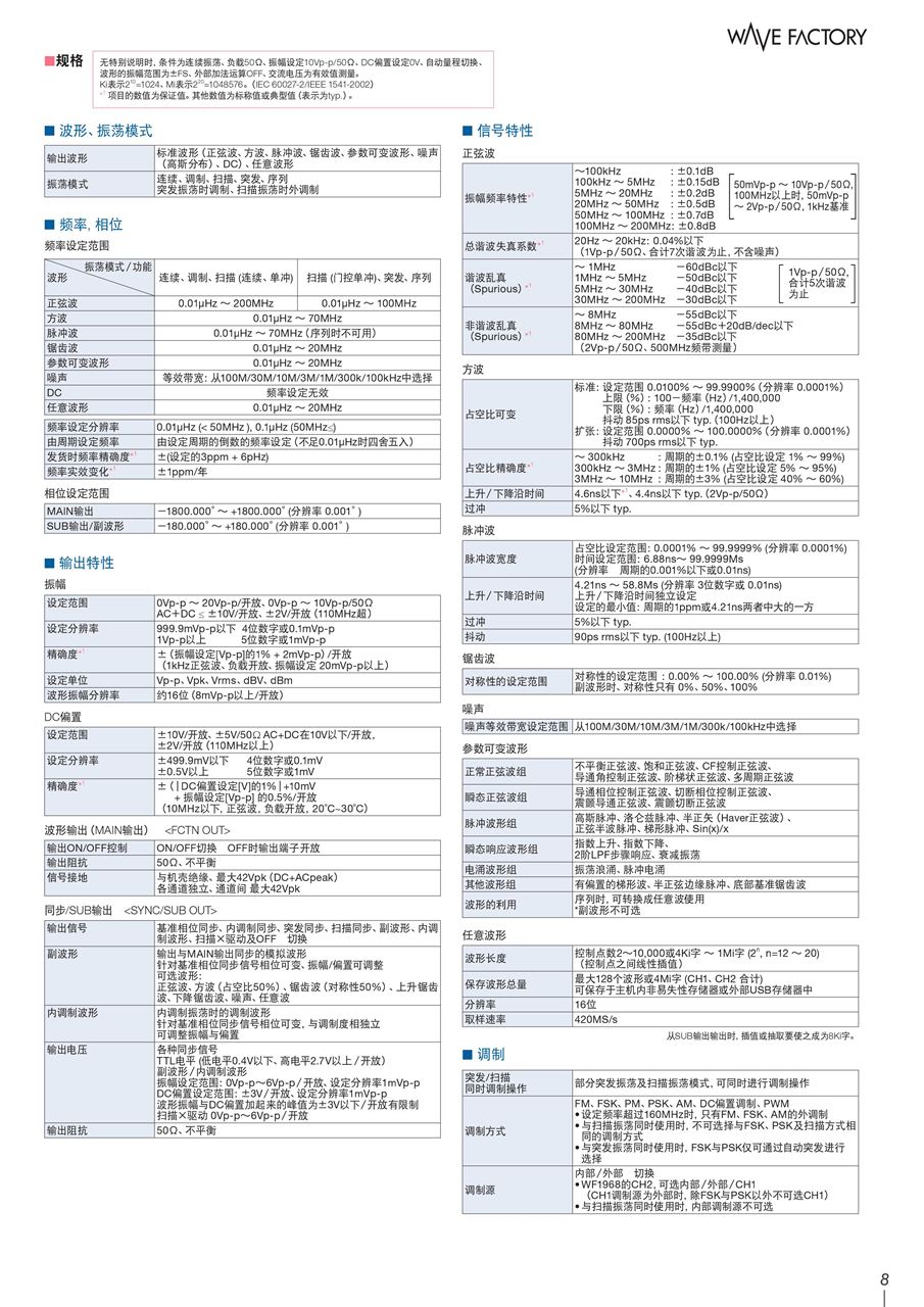 • 方波和脉冲具有高分辨率, 可变精度为 0.0001%