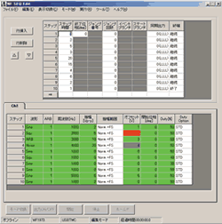 ![]() | 左图所示信号看似非常复杂,但获取该信号仅需下图表所示的简单程序(序列清单), 其事后操作就由WF1973/ WF1974自动进行。 如果使用附件“序列编辑软件”, 就能轻易地制作·编辑复杂的程序。 |
