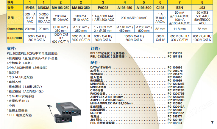 法国CA PEL102 /PEL103在线电能质量分析记录仪技术参数: