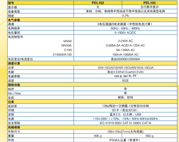 统的功率/电能数据。PEL 被设计成能够在 CATIII1000V 和 CATIV 600V 环境下。