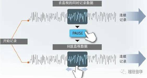 在记录数据期间,按 [PAUSE]按键就可以在记录的同时回放已存储的数据。
