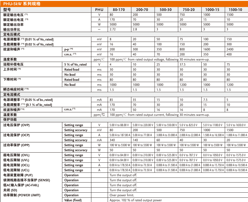 共有18 种型号,包括3种功率容量(5kW/10kW/15kW)和6种电压(80V/200V/500V/750V/1000V/1500V),以满足所有客户的需求。