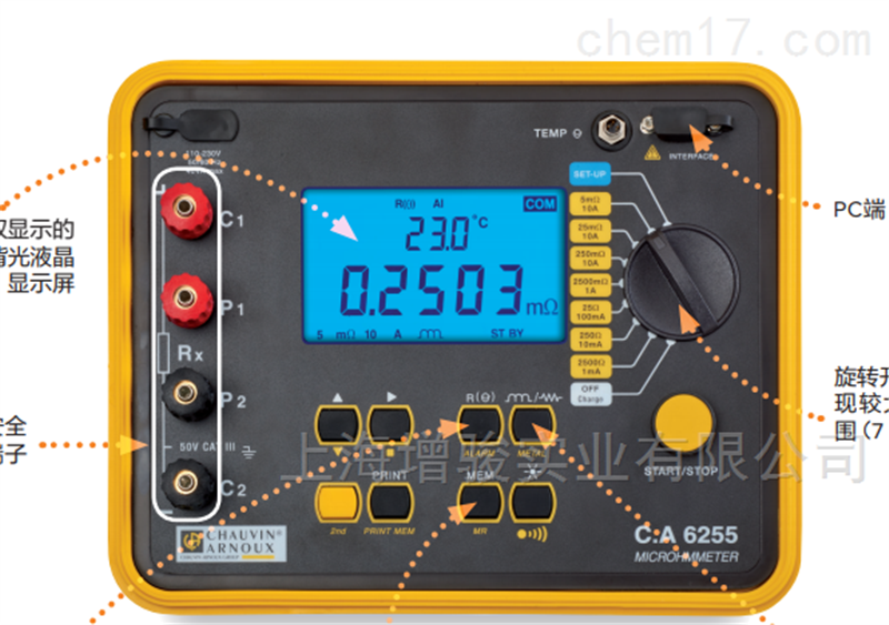 微电阻计,法国CA 6255 高精度微欧计是一 高精度,大量程,适用于各种环境。感应物体配备优化的电流发生器。测量数值高达 2,500 Ω,分辨率达 0.1 μΩ, 自动补偿杂散电压, 基准温度下的 R 值 计算 –,Pt100 Ω 探头
