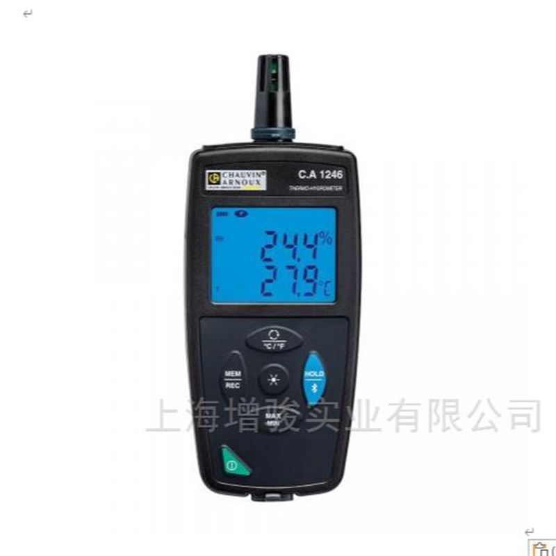 法国 CA1246高精度温湿度计是一款三合一的温度度测量计,温度、湿度、露点.可测量大气环境中的温湿度,应用范围广.相对湿度:3.0%至98.0%RH,环境温度: - 10.0°C至+60.0°C,露点温度: - 20.0°Ctd +60°Ctd。最小和最大值显示自动计算,自动断电,可调背光,IP54防水防尘功能,可测量大气环境中的温湿度,。