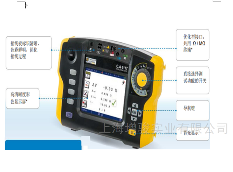 法国CA6116N多功能电气安规测试仪人体工程学设计测试仪材质坚固、结构紧凑且重量轻巧,人性化设计、实现快速上手、高效操作。其超大背光彩色图形显示屏易于数据读取。