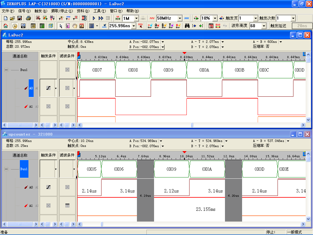孕龙逻辑分析仪加入了触发次数计算(Trigger Counter)的技术,Trigger Counter,的功能是将有一个以上符合触发值的被测信号,使用者可决定触发点是要在第几个符合触发设定的位置进行触发,*次碰到触发的设定状态时就触发Trigger Counter就要设定为1(预设),第三次碰到触发的设定状态时才触发Trigger Counter就要设定为3,依此类推。 Trigger Counter大可设至65535次。 |